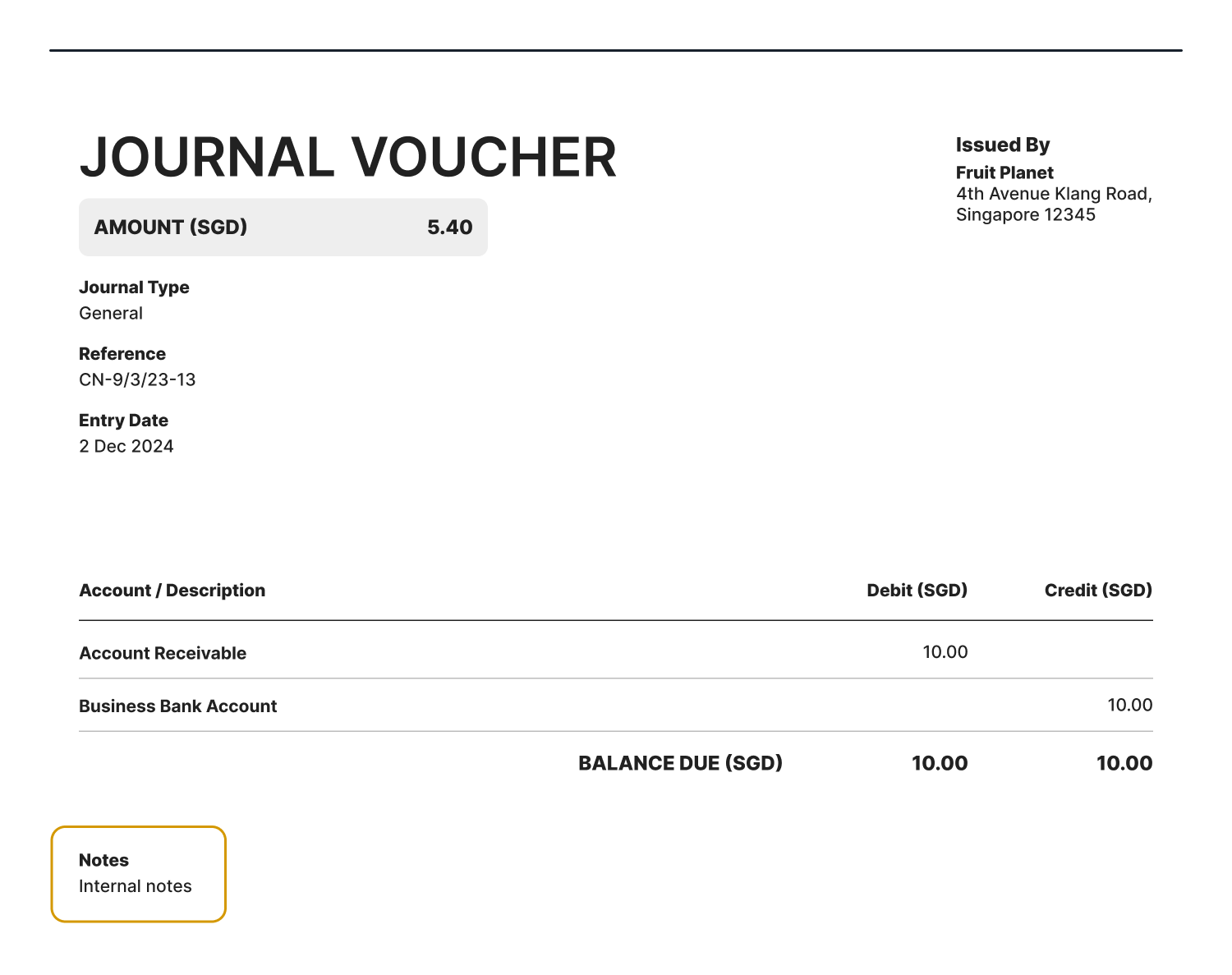 You can add some internal notes to your journal. These notes will be printed on the journal PDF.