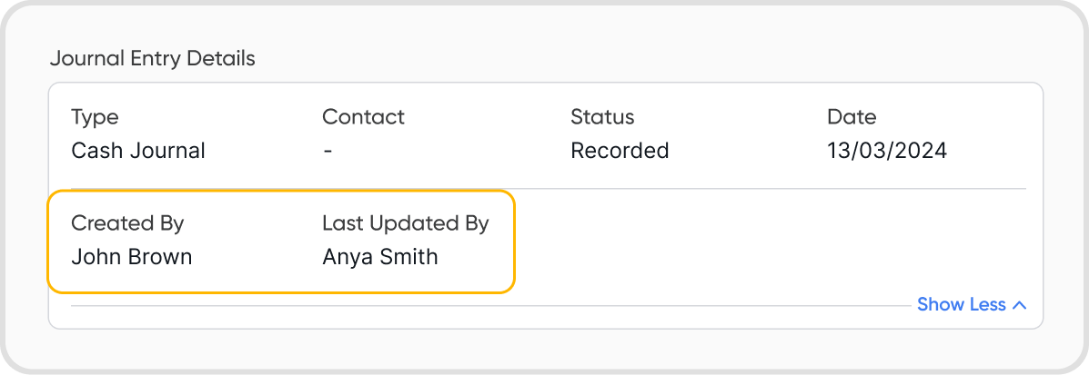 Last Updated By - shows the user who last updated the journal entry
