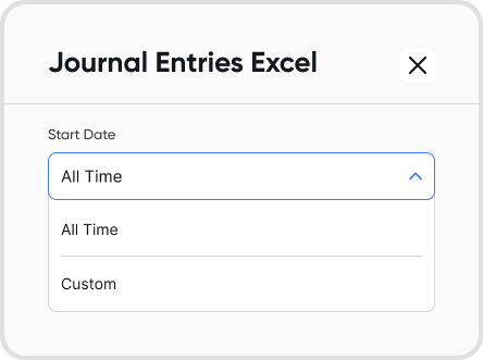 You can select a Start Date to define a time range when downloading the Journal Entries Excel.