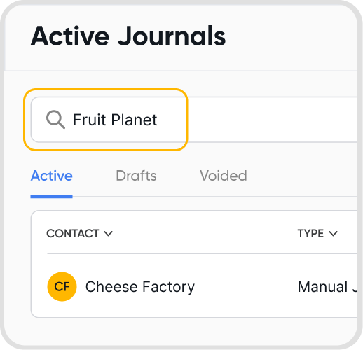 Activity and Journal Entries PDF/Excel for all transactions relating to the contact.