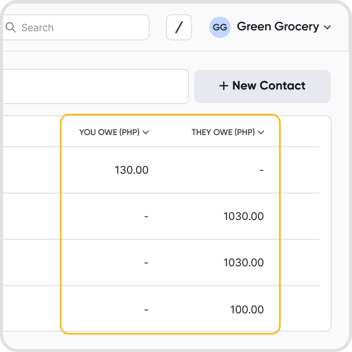 If the contact is used to create transactions in foreign currency, the "You owe / they owe" amount will be calculated with today's exchange rate rather than the rates at which the original transactions were created.