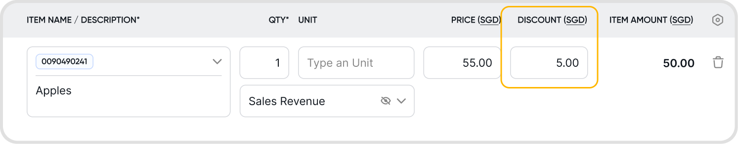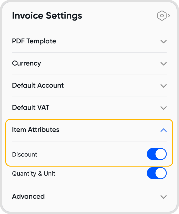 To add a discount, ensure that Discounts are enabled under Item Attributes in the Invoice Settings.