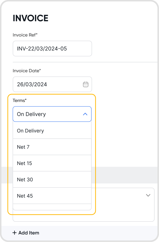 The due date will be the invoice date + the designated net days, e.g. 7 days after 20 Mar 2024 is 27 Mar 2024, so the invoice will be due on the 27 Mar 2024.