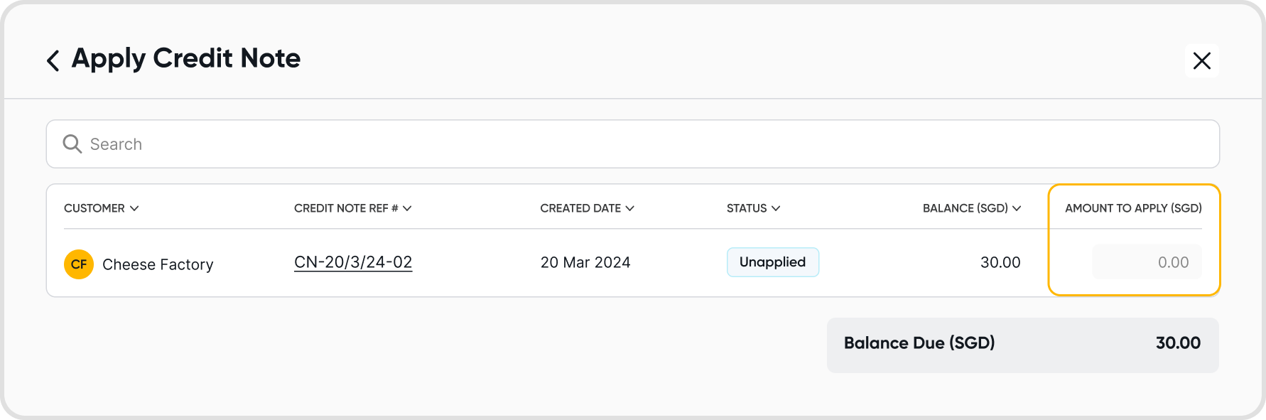 You can adjust this via the Amount to Apply field. Enter an amount smaller than the customer credit note amount to only apply the credit note partially.
