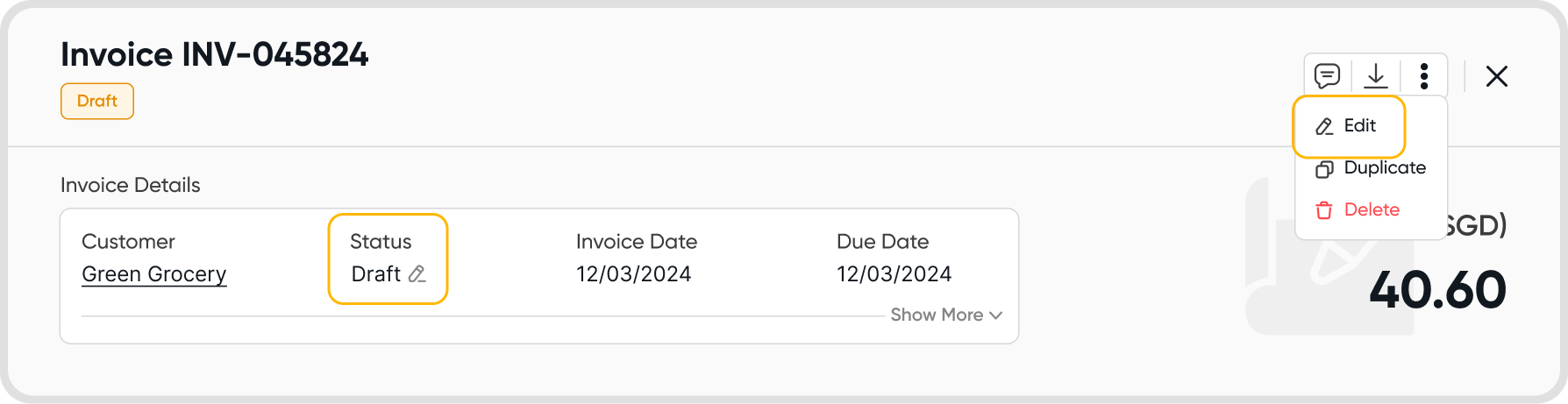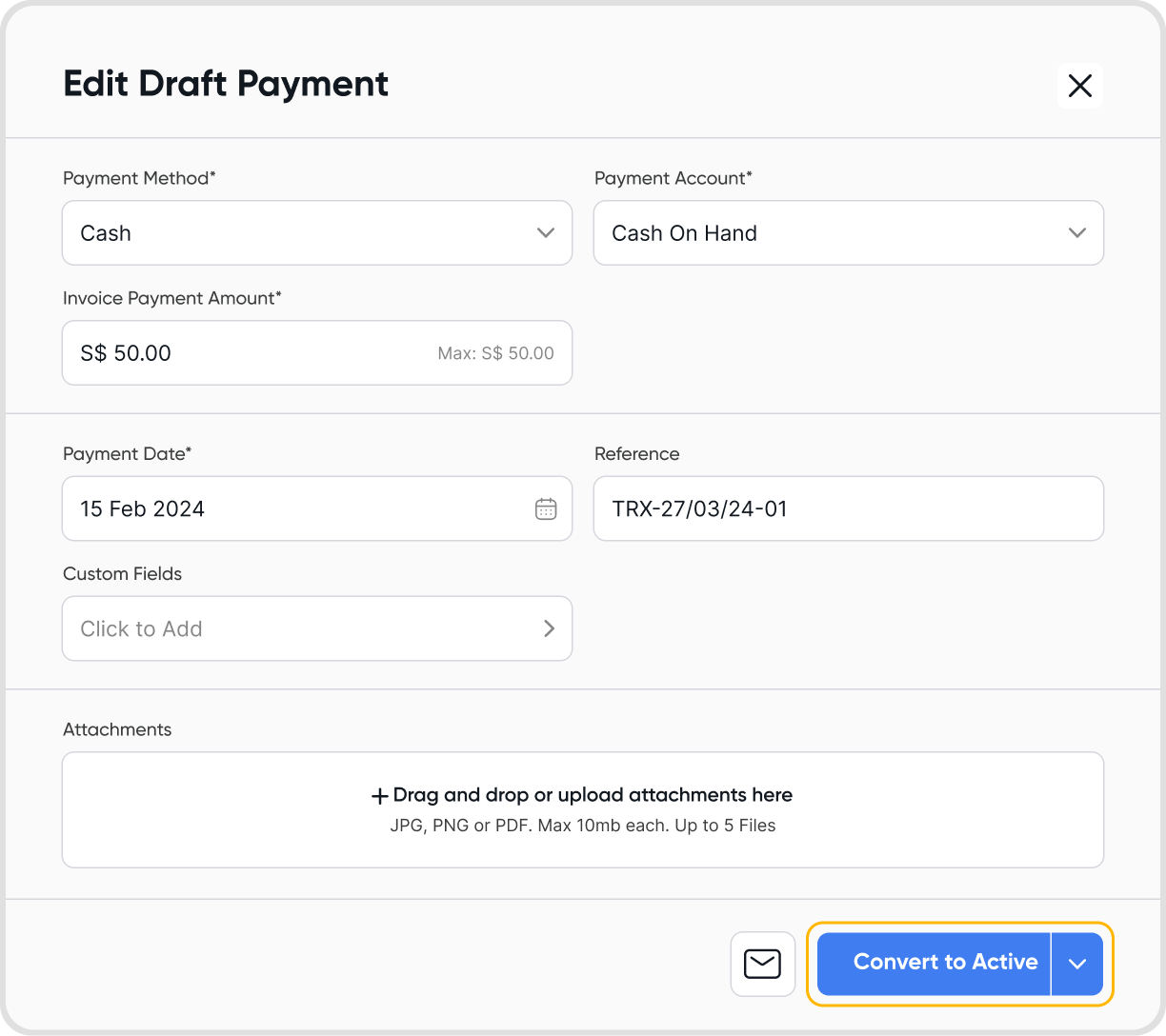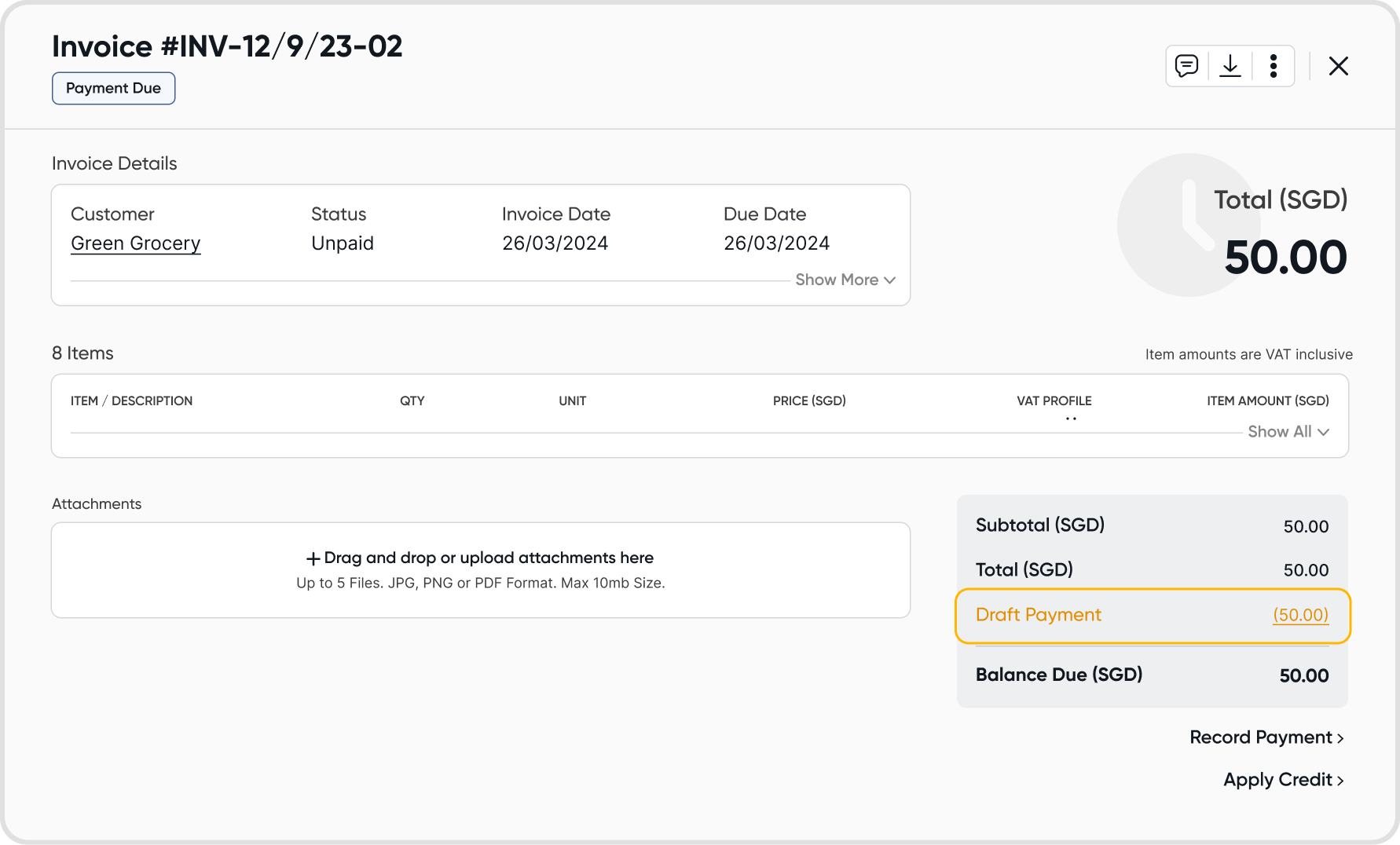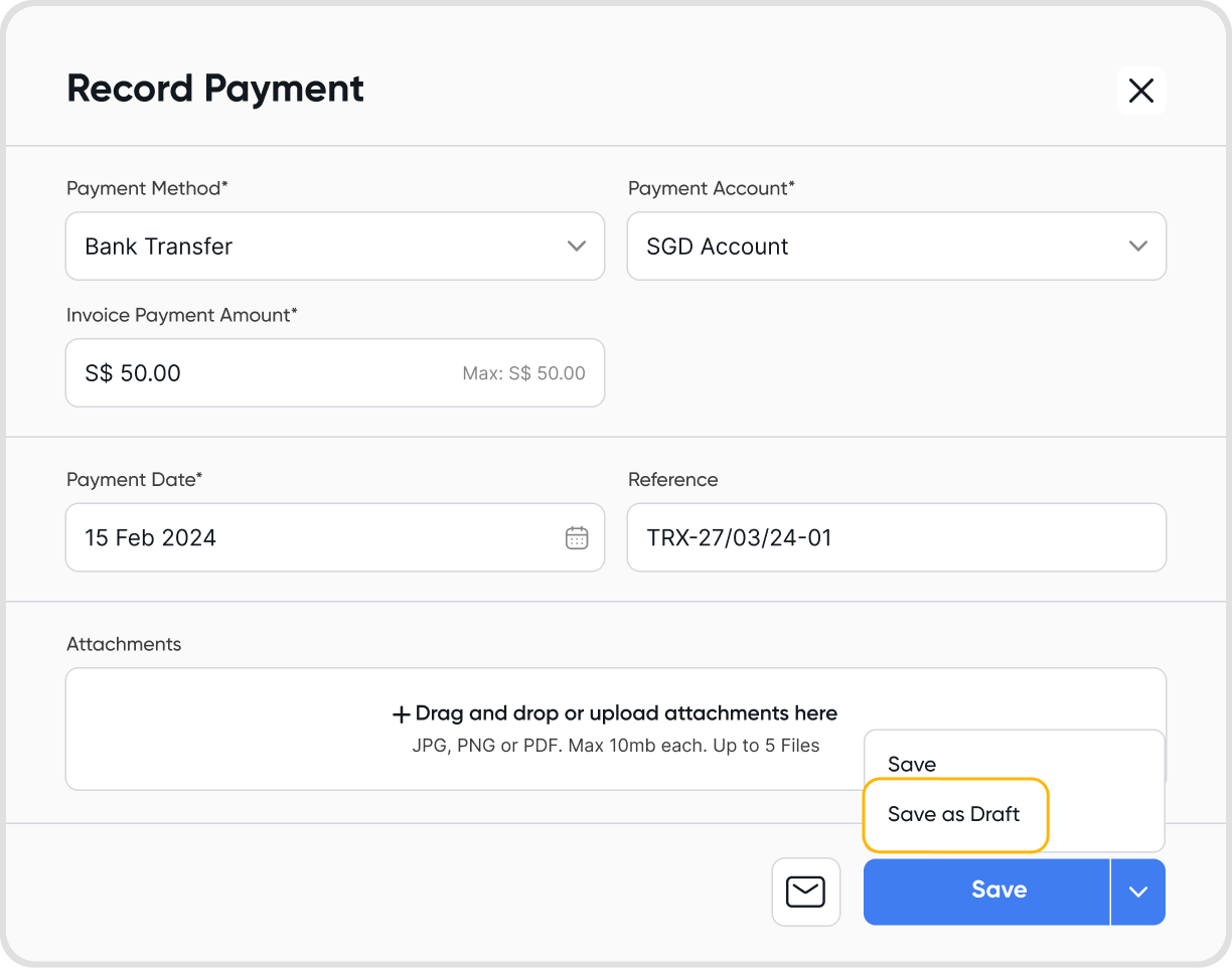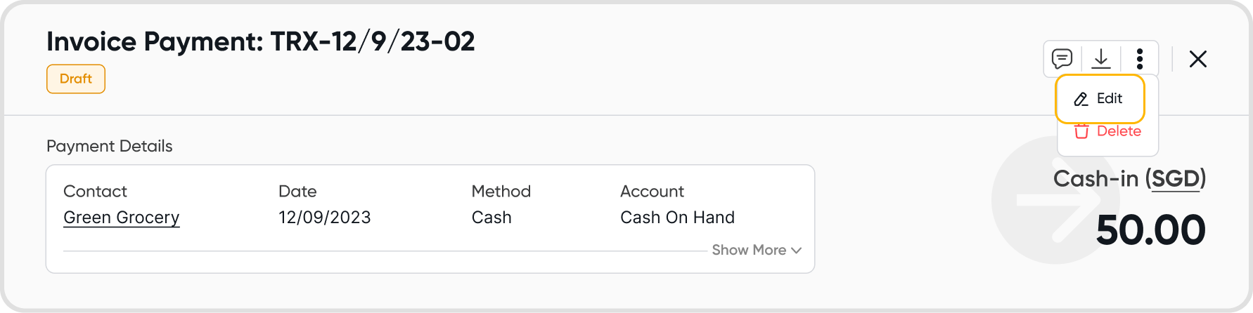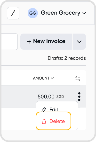 Similar to draft bills, draft invoice payments can also be deleted.