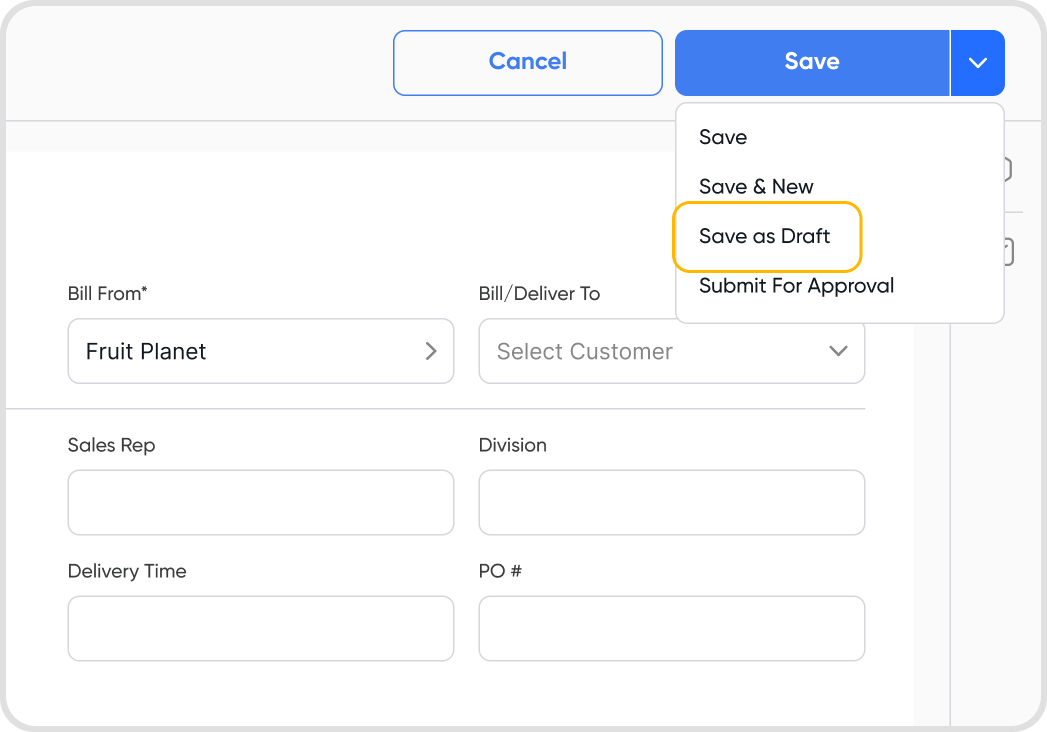 Yes, an invoice can be saved as a draft even if all the mandatory fields are not filled