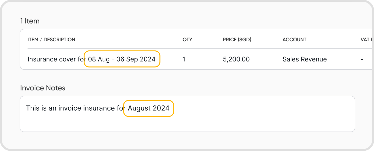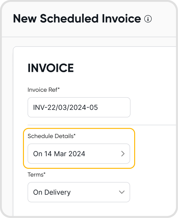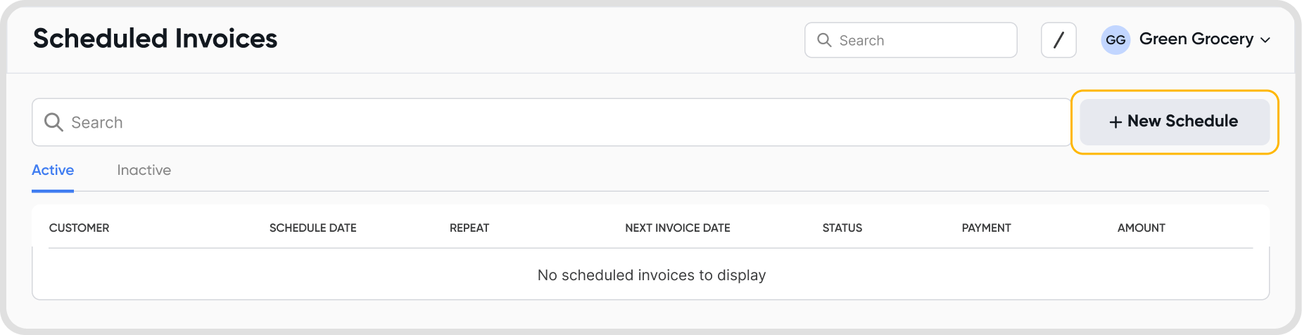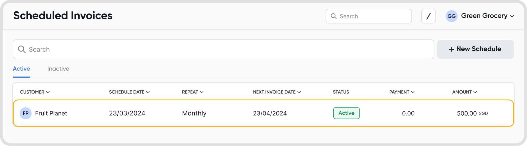 Note: The date on the invoice will be the scheduled date, rather than the day the schedule was created.