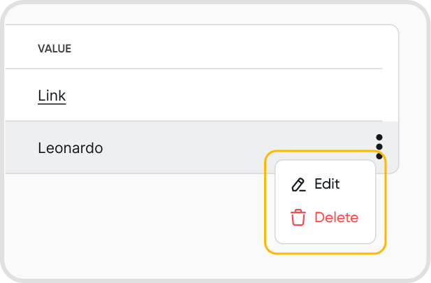 You can select from the following bookmark types: Boolean, Date, Link, Number, Text.