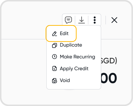 Choose the edit option from the 3-dot menu of the desired invoice details screen to edit.