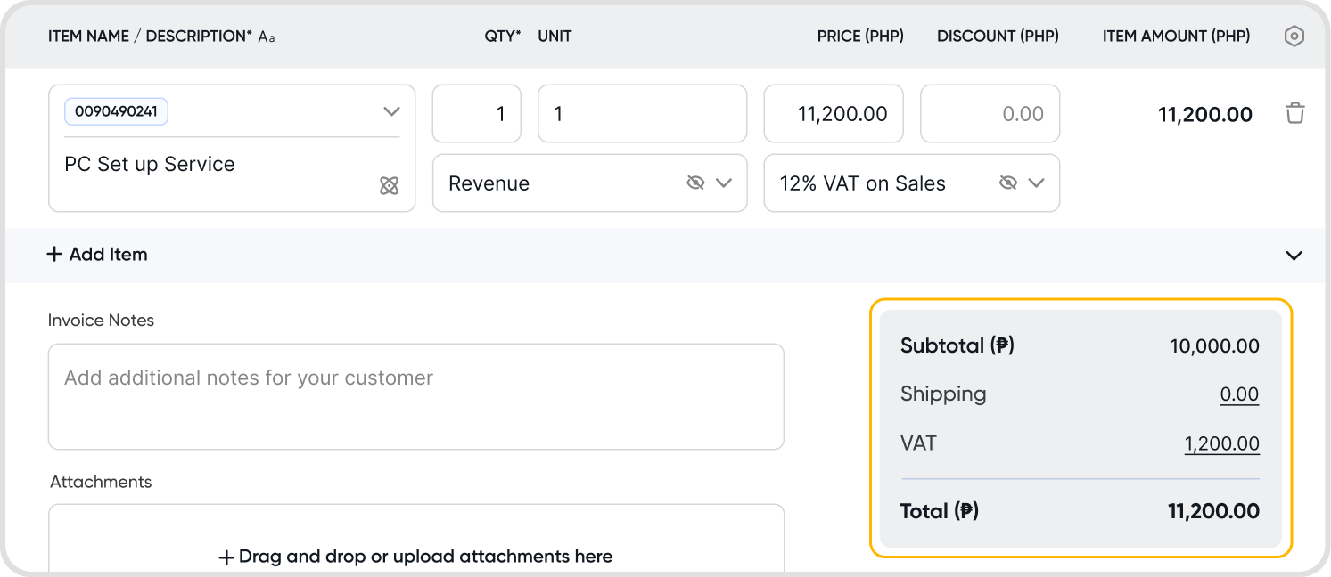 Upon choosing edit, you will see an Edit Invoice page, where you can make changes to your invoice headers, line items, attachments, invoice notes or invoice settings.