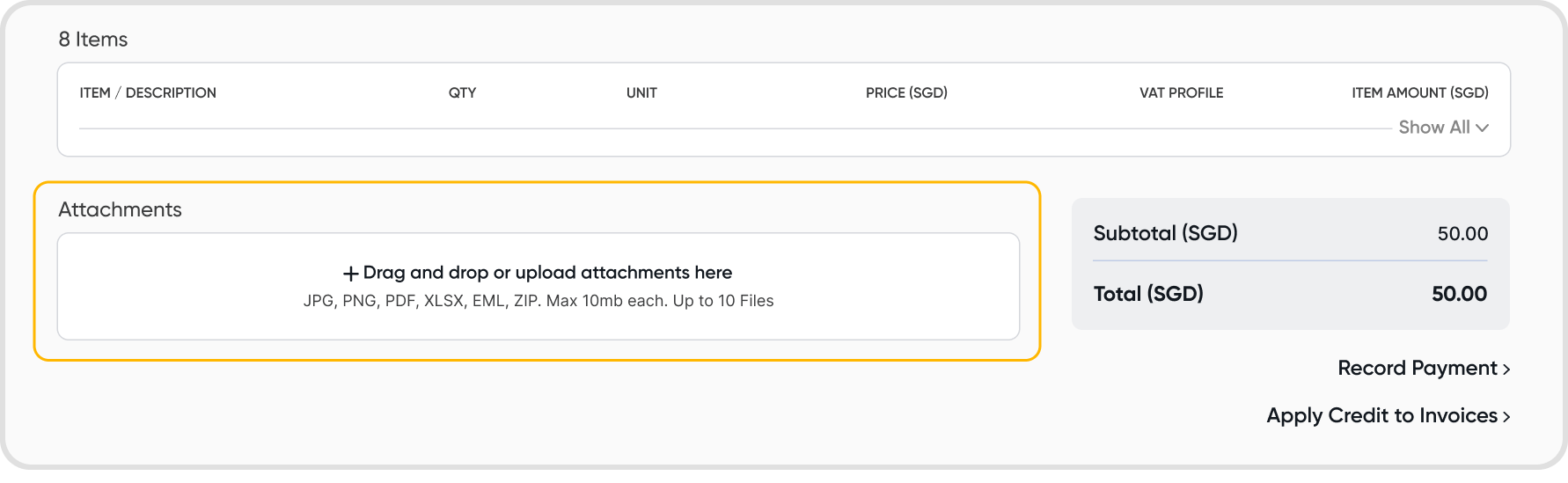 Alternatively, you can add attachments to an existing customer credit note.