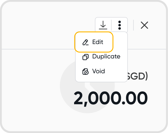 Choose the edit option from the 3-dot menu of the desired customer credit note details screen to edit.