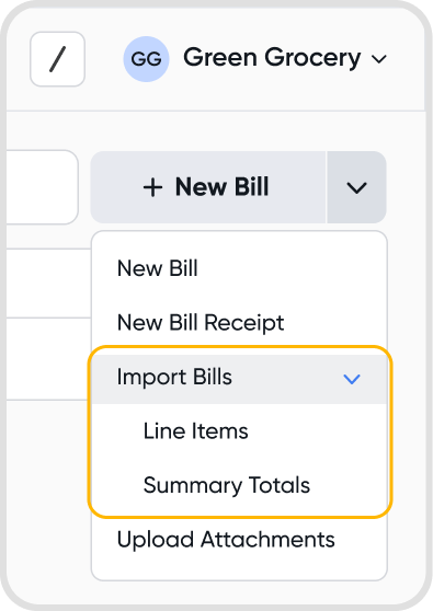 Line Items: Rows with the same bill reference are grouped into one bill.