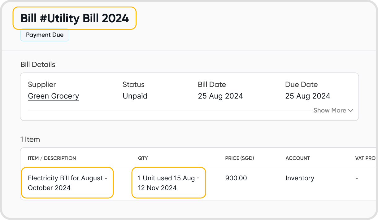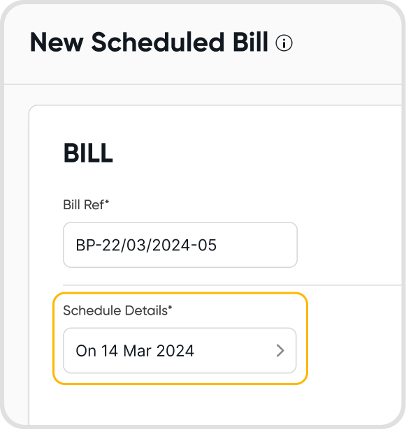 Note: The date on the bill will be the scheduled date, rather than the day the schedule was created.