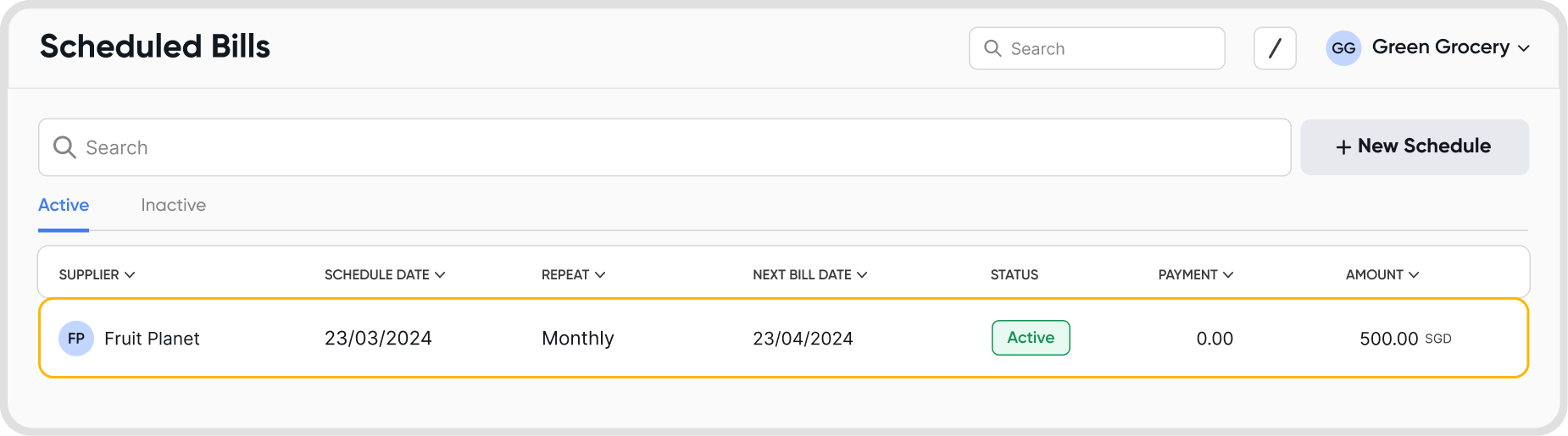 Making a schedule inactive stops any new bills from being created based on the schedule.