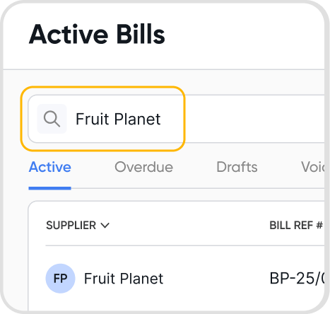 Yes. Under Bills, you can enter the supplier name or bill number in the Search Bar. Juan will automatically filter out the relevant transactions for you.