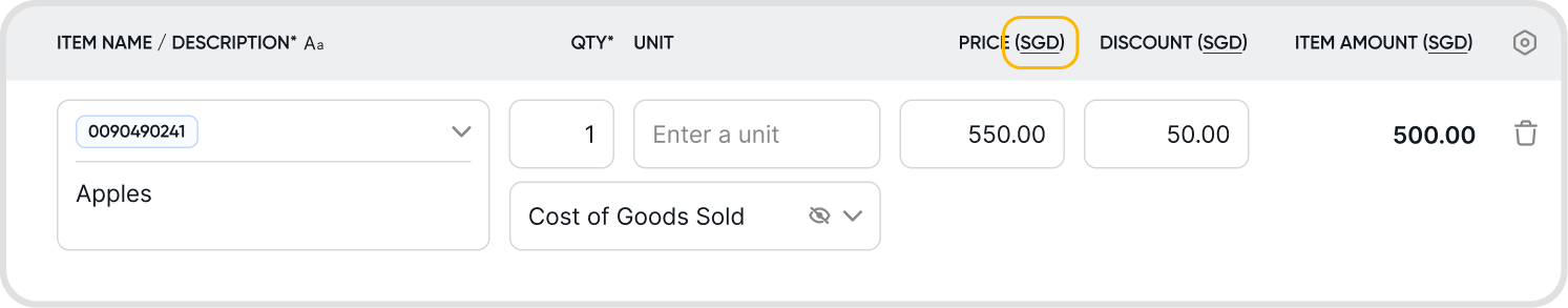 If you have selected a contact for the supplier credit note, the currency will be automatically set to the contact's default currency.