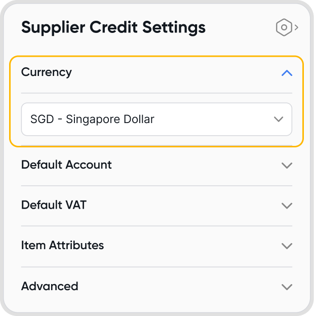 Supplier credit note setting: Settings that will only be applied to a single supplier credit note (the one being created or looked at)