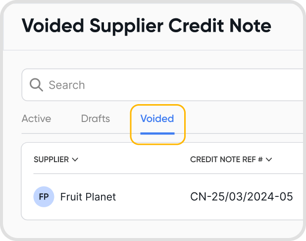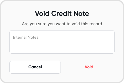 Other than confirming you want to void the supplier credit note, you can also add in internal notes at this stage for your team to view.