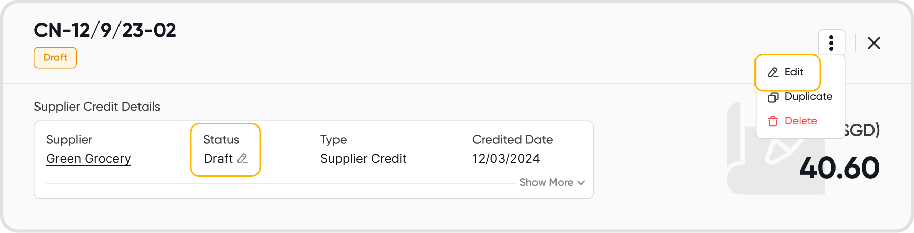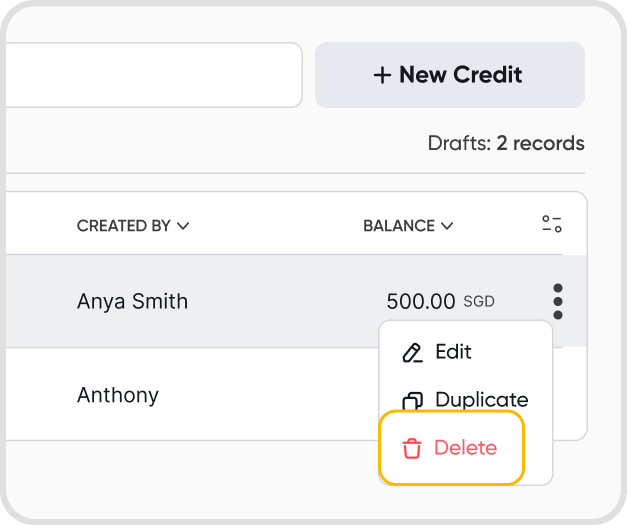 Similar to a supplier credit note, a refund can also be saved as a draft against a credit note.