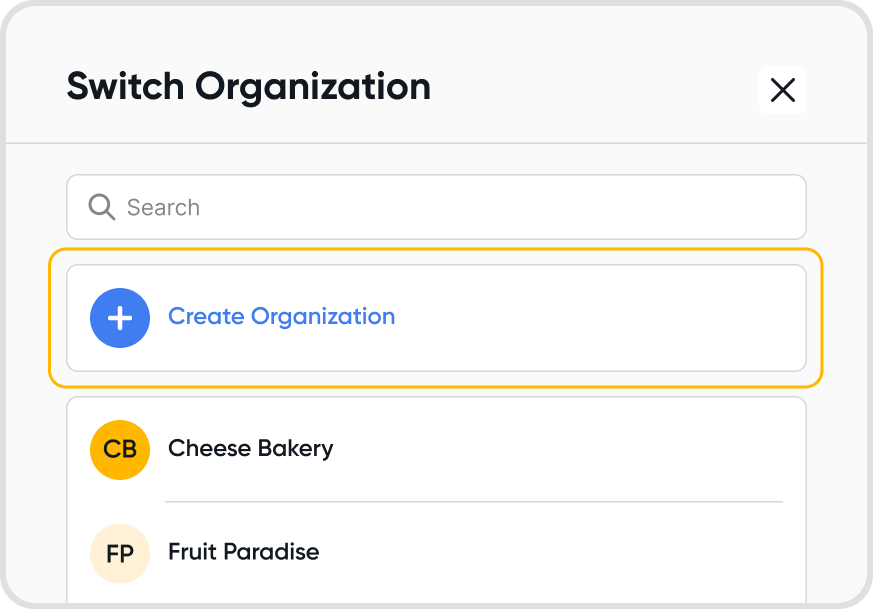 To create a new organization in Juan, click on Switch Organization after logging in.