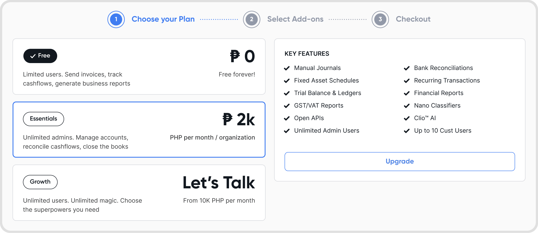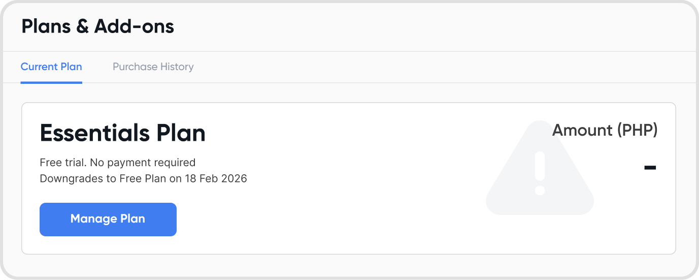 Once you’ve setup your Billing Account, head over to Settings > Organization > Plans & add-ons, click subscribe/manage plan.