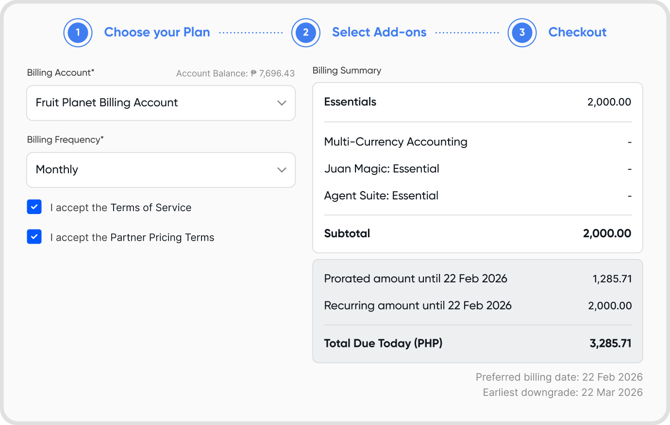 You can set the billing frequency: Monthly, Quarterly, Yearly, Pay-as-you-go