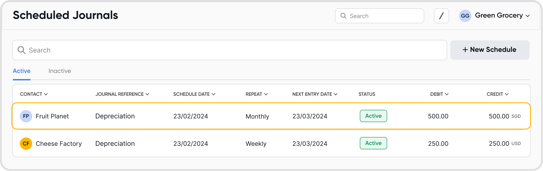 If the journal was created from a one-off schedule, the schedule will turn inactive as soon as the journal is created. As such, there will be no further impact on the schedule even if you void the journal at this point.