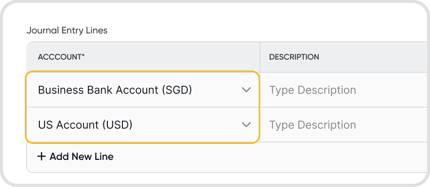 Click on the debit or credit field for the journal entry of the cross-currency account, depending on what you would like to enter.
