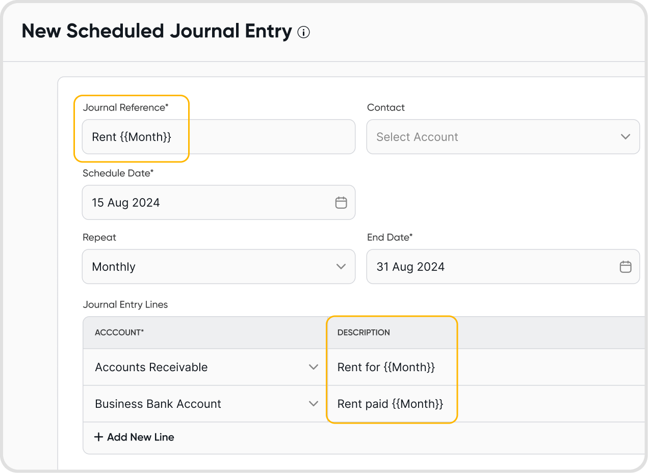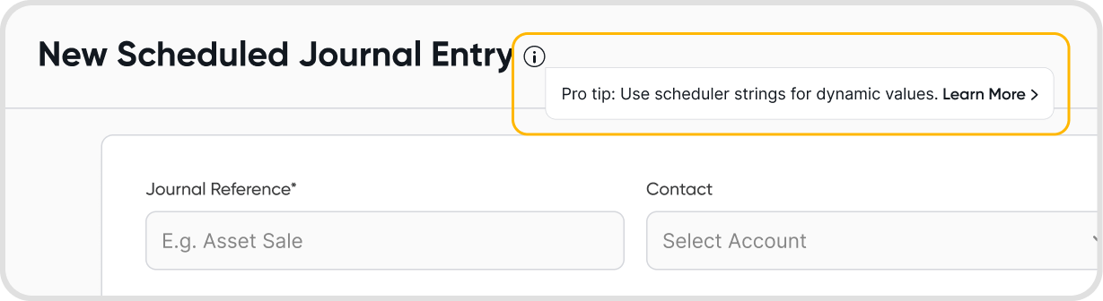 When the scheduler runs and generates a journal, the strings will be replaced with dynamic values based on the scheduler string type and the generated bill's transaction date.