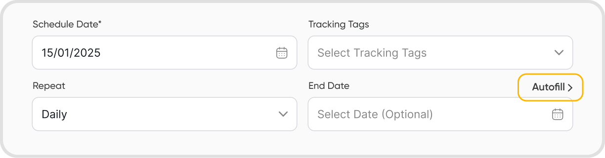 The End Date can be set manually or automatically using the Autofill End Date function.