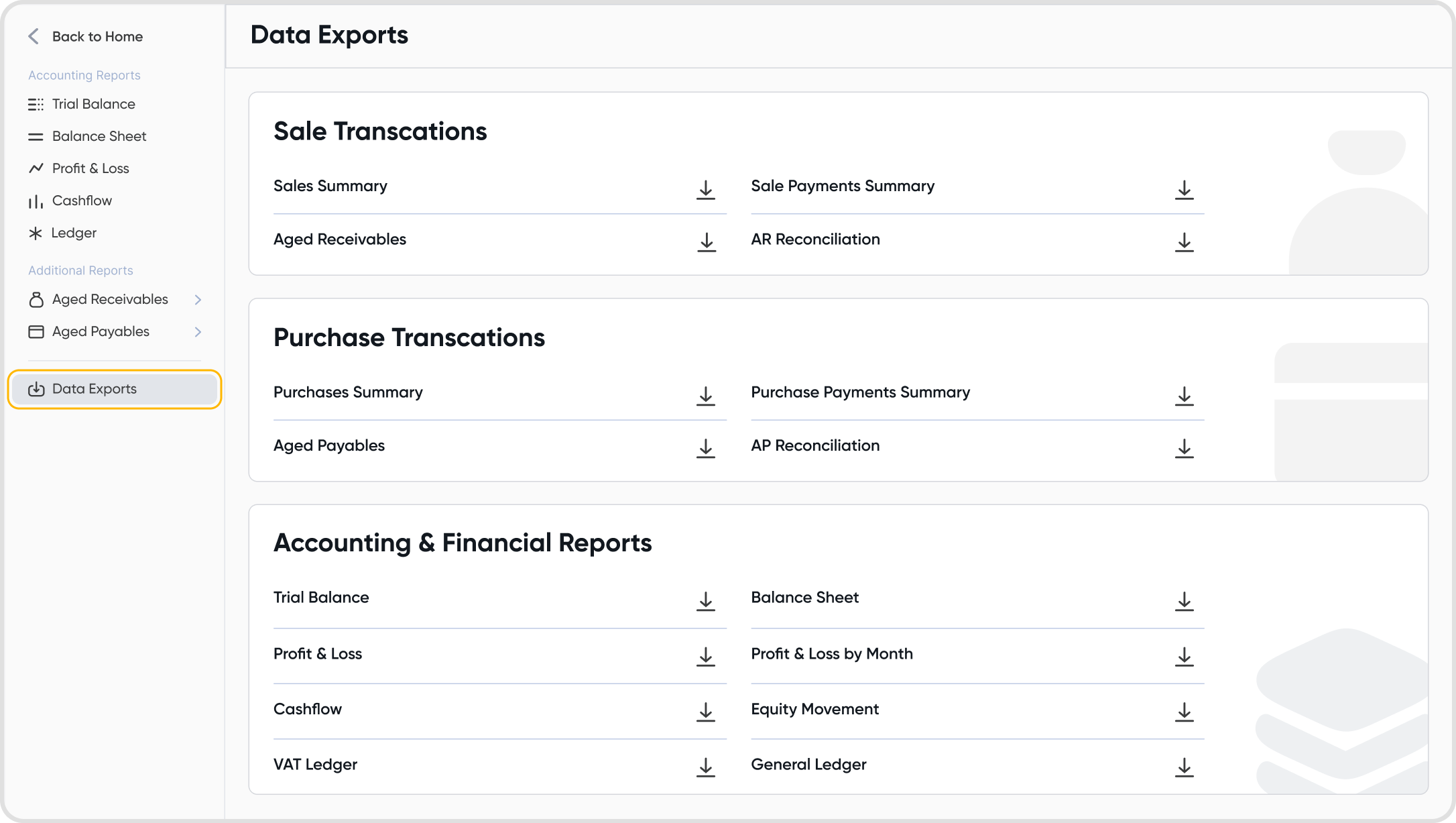 If you need any customized reports, such as other financial information or report structures, please reach out to us at support@juan.ac for assistance.