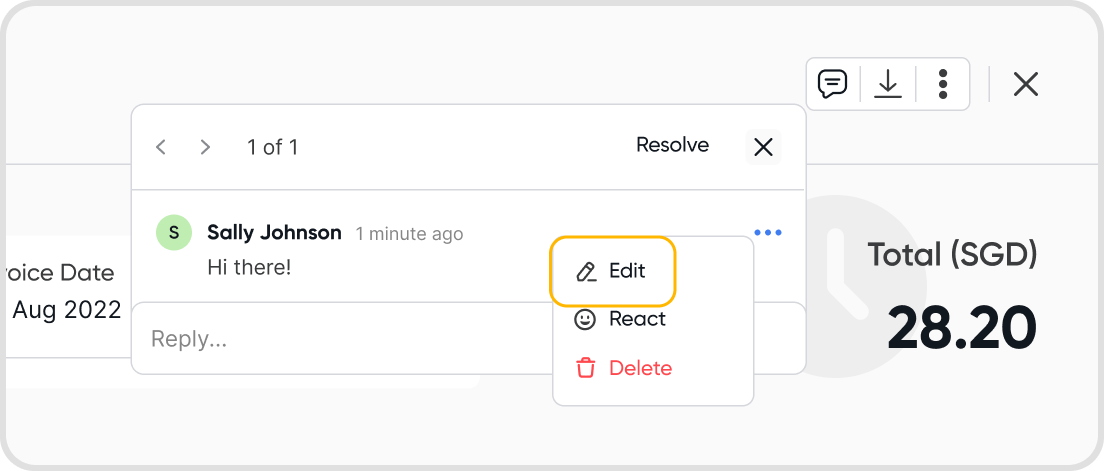 Choose the edit option from the menu of the selected comment.