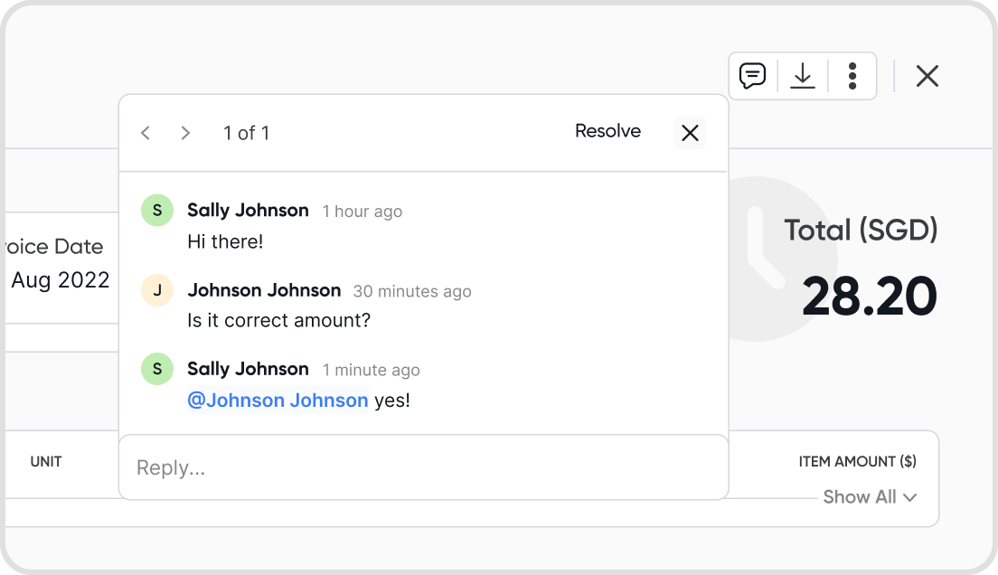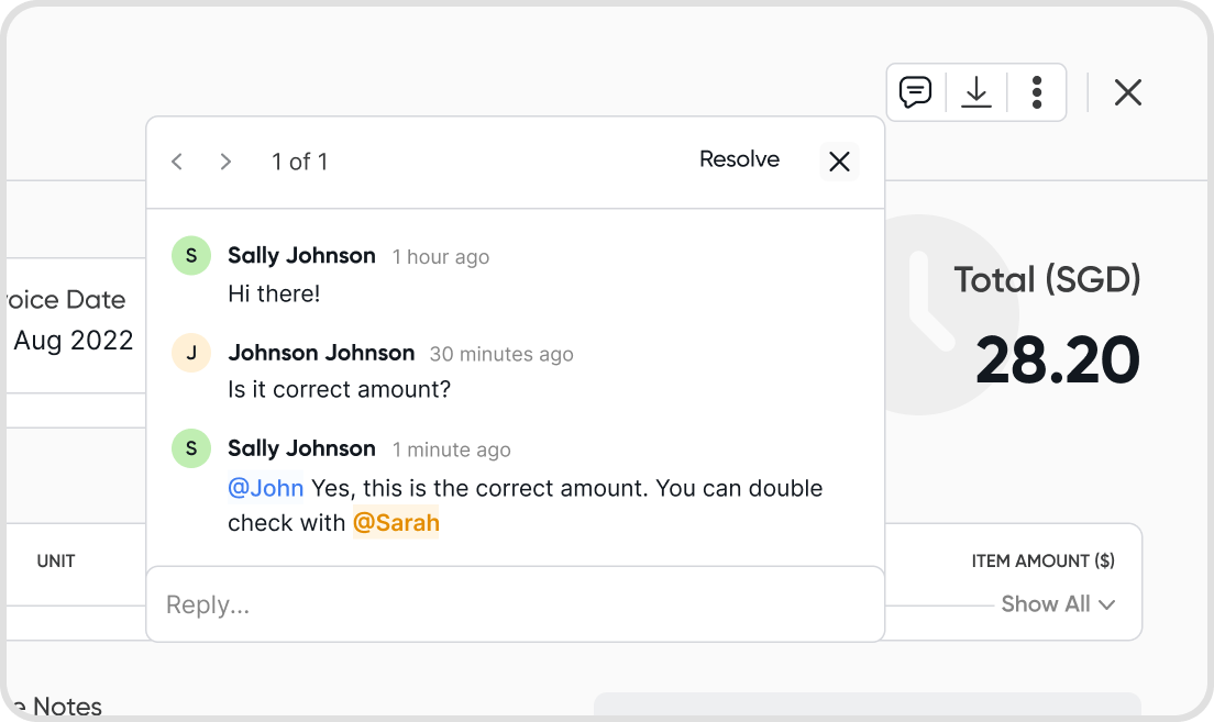 A resolve button is available for comment threads.