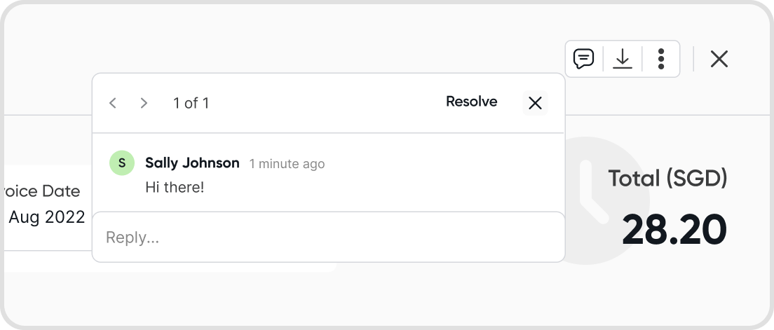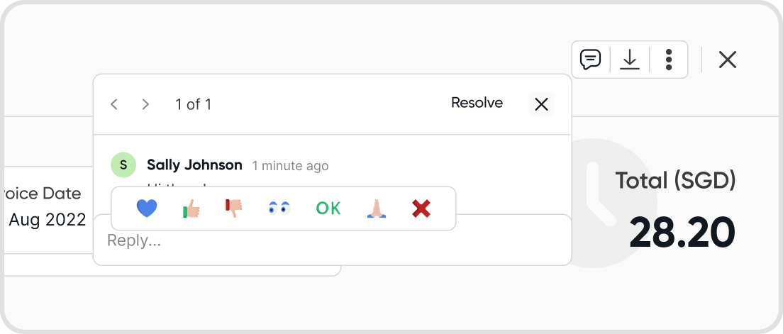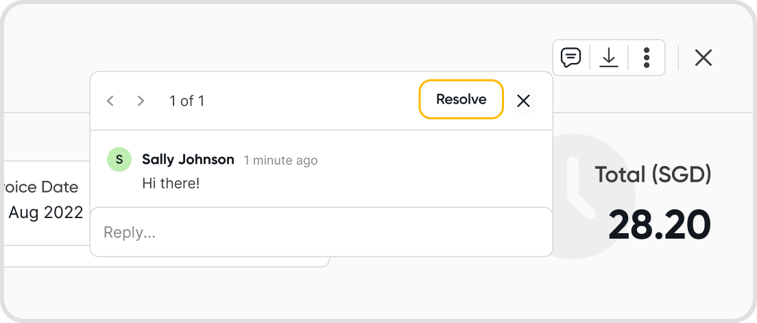 If there is a currently active comment thread on a transaction, the comment icon will have a notification badge on it.