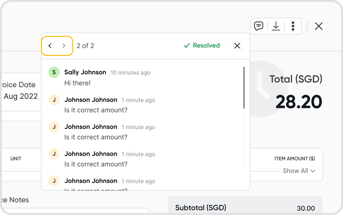 Yes, you can. Click on the left and right chevron icons to navigate between different comment threads that have been created for the transaction.