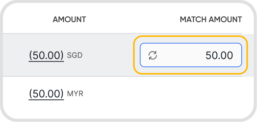 To partially reconcile with a statement line, you can change the Match Amount for a transaction that you would like to partially use for reconciliation.