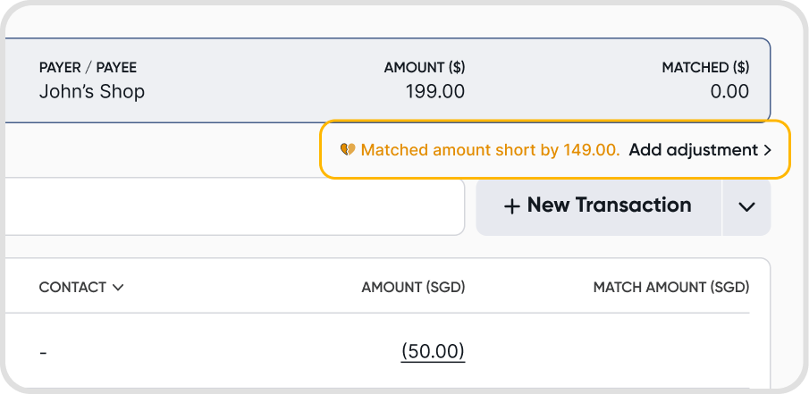 Transactions, payments & adjustment entries can be combined to reconcile a statement line.