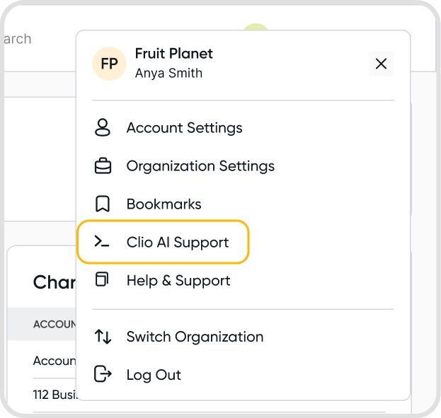 Clio is session-based, meaning it resets when you log out, close the tab, or switch organizations. Chat history is not retained.