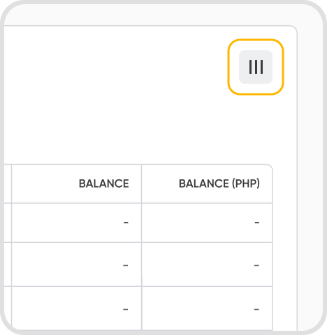 Note: Account Code and Account Name are locked. This means you cannot hide or re-arrange them. (PHP) pertains to the org’s default currency.