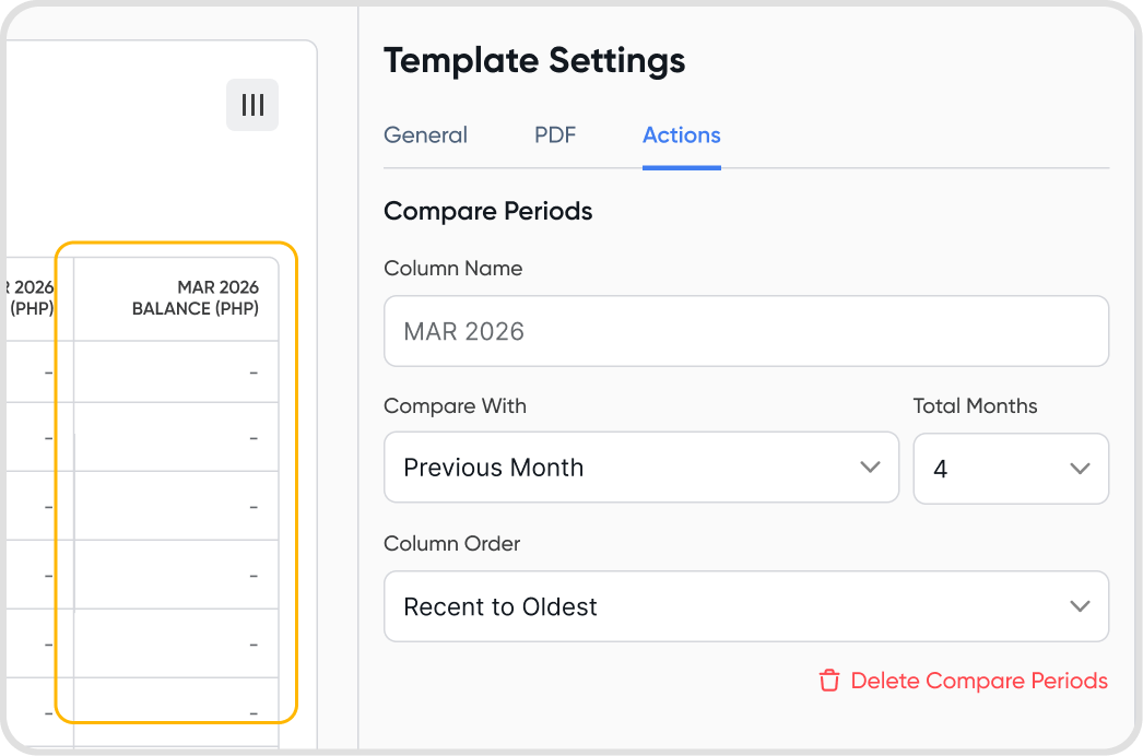 Comparative Periods: Choose periods by comparison type (day/month/quarter/year) and display order.