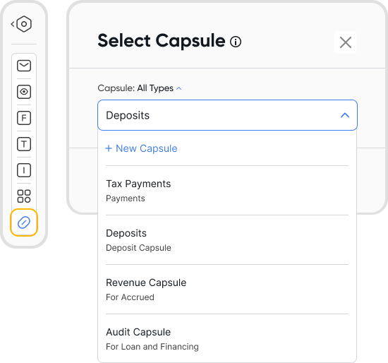 When creating or editing a transaction, select the capsule icon and choose an existing capsule or create a new one.