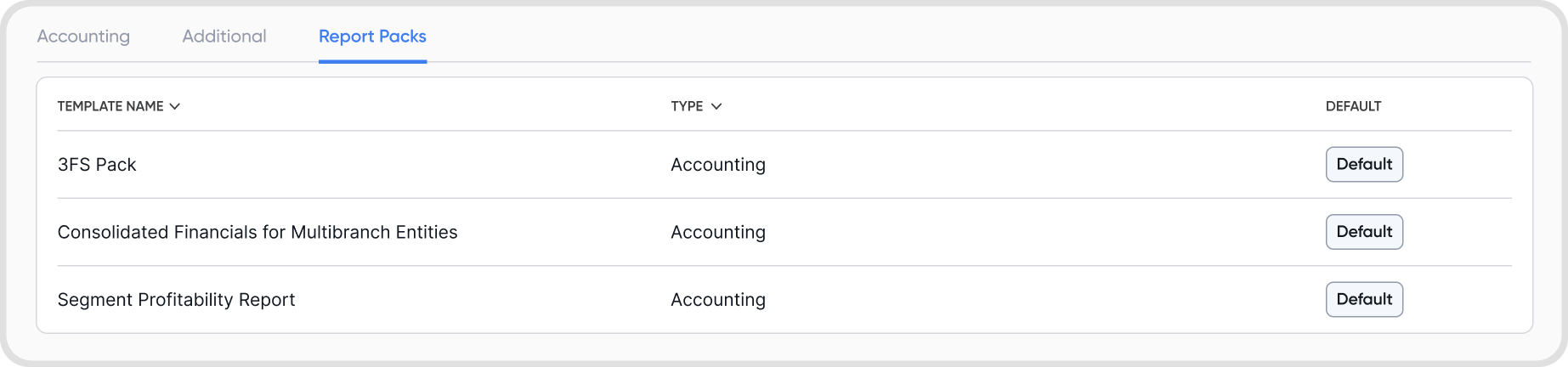Go to Settings > Templates > Reports > Report Packs or access via Reports > Report Packs.