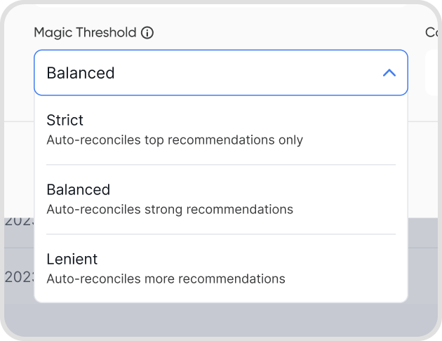 Strict: Auto-reconciles only top recommendations.