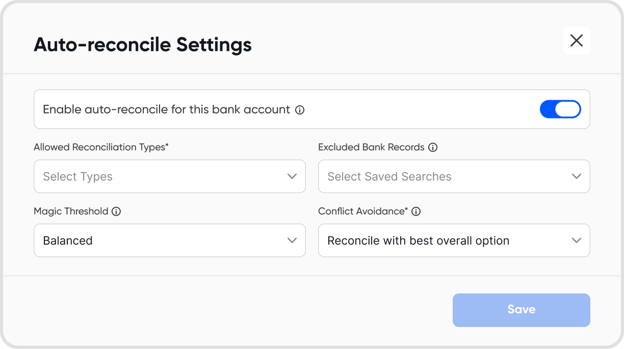 These settings determine which transactions are automatically reconciled when auto-reconcile runs.