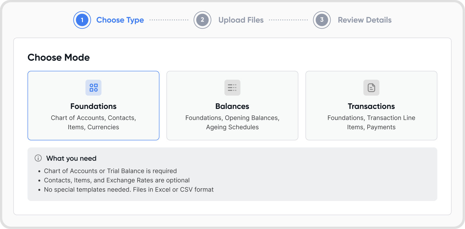 Data Transfer allows you to migrate your existing accounting records directly into our platform without manual entry.