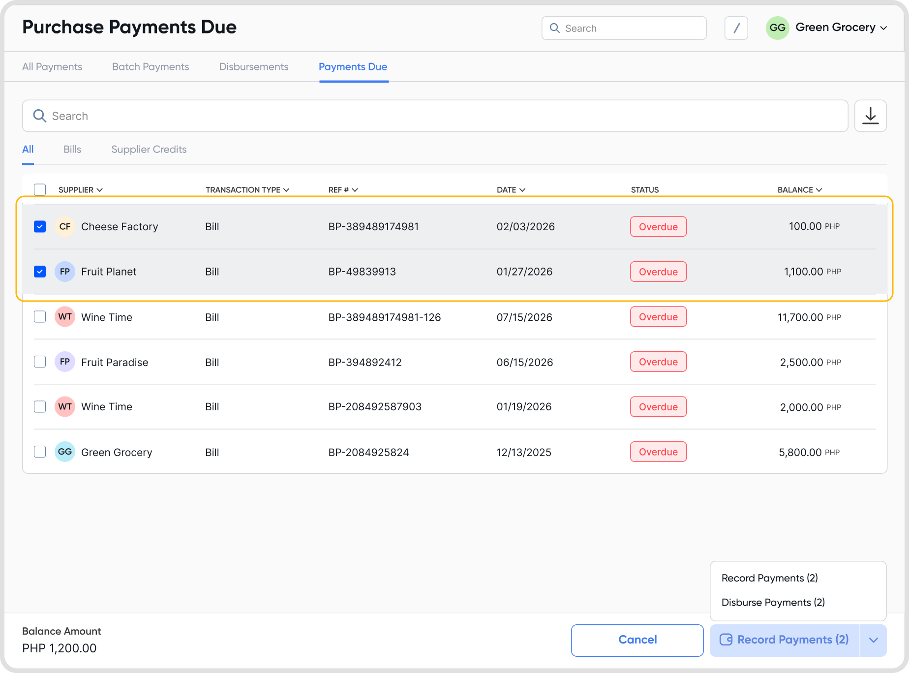 When a payment is made, a payment record is automatically created and receipts are sent to both you and the supplier.